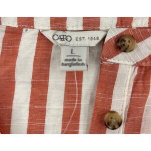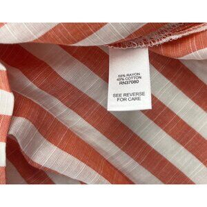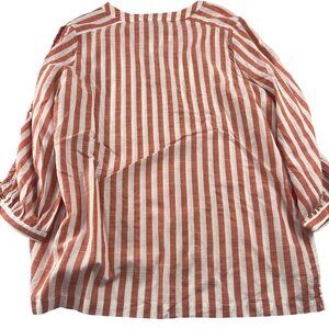 Cato Womens Striped Button-Front Blouse Large Orange White 3/4 Sleeves Pullover