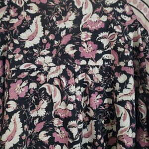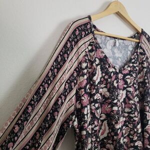 Cato Women's Top Paisley Floral 2X Pink Black Boho Flowy Knit Smocked Romantic