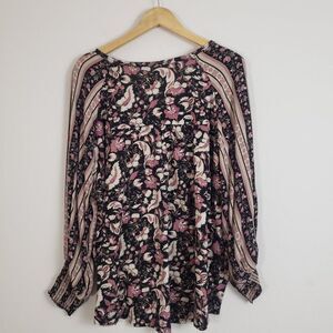Cato Women's Top Paisley Floral 2X Pink Black Boho Flowy Knit Smocked Romantic