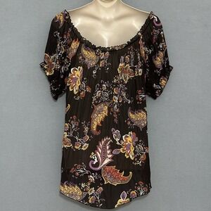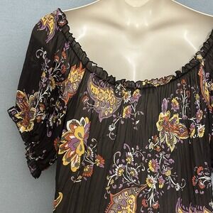 Keywords: Cato Woman, Plus Size Top, Off Shoulder Blouse, Floral Top, Paisley Print, Bohemian Style, Womens Top, Size 22/24W, Black Multi Top, Summer Blouse, Lightweight Top, Polyester Blouse