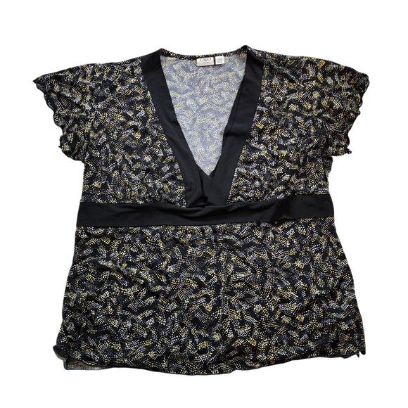 Cato Womens Top Size 18/20W V-Neck Short Flutter Sleeve Stretch Knit Pullover
