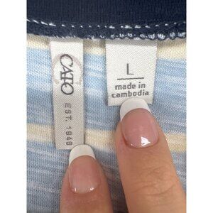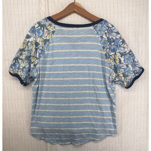Cato Womens Top Sz L Short-Slv Floral Striped MixedMedia Blue Boho Modern Casual