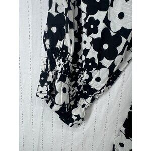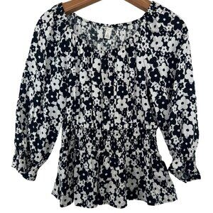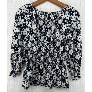 Cato Womens Top Sz S Black/White Floral On-Off Shoulder Peasant Boho Smocked