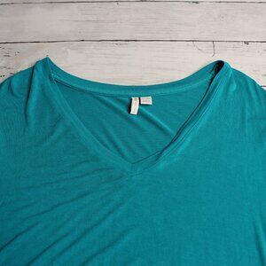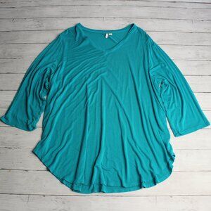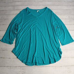 Cato Women's Tunic Top Plus Size 22W 24W 3X Solid Blue V Neck 3/4 Sleeve