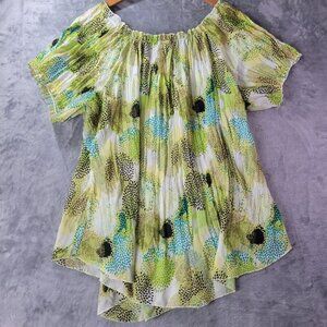 Cato Womens XL Peasant Flowy Top Boho Festival Spring Summer Green Blue Floral