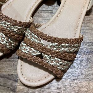 Cato Women’s Braided Straps Slip On Flat Sandals Brown Gold Size 8