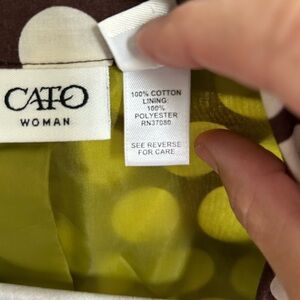 Cato Women plus size polka dot belted overcoat with cap sleeves and faux front pocket. Beautiful green lining.