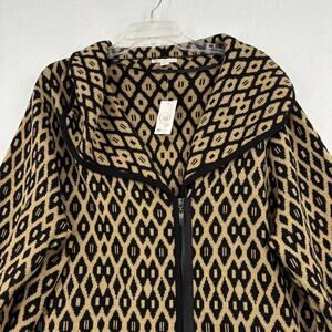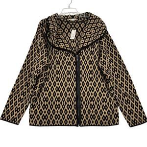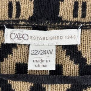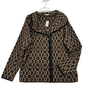 Cato Wool Blend Cardigan Sweater Size 22/24W Black Tan Shawl Collar Full Zip