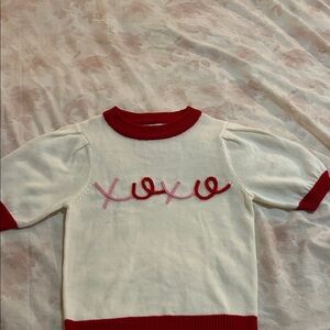 Cato XOXO Cream & Red Cropped Short Sleeve Sweater Size Medium