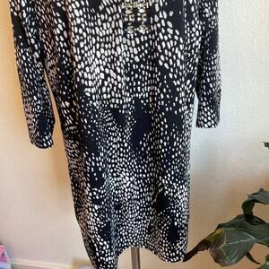 Cato Woman Black and white tunic with beaded embellishments on front with 3/4 sleeve. Long loose fit. Women’s tops size 14/16W