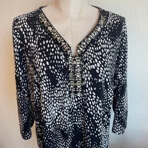 Cato black white beaded 3/4 sleeve tunic blouse womens 14W top plus