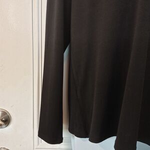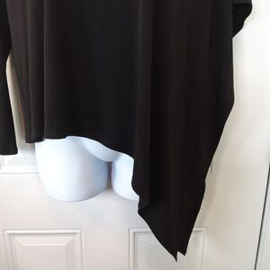 Cato black high low blouse with one side long sleeve, and one side draped sleeve.