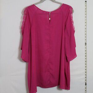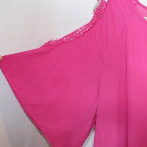Cato bright pink v-neck lace cold-shoulder flare sleeve blouse 22/24
