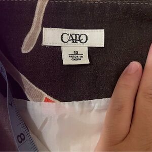 This knee-length A-line skirt from Cato showcases a striking red and black color palette, perfect for casual outings or work settings. The skirt's modern floral pattern adds a touch of artistic flair, while its medium-weight fabric ensures a flattering silhouette.