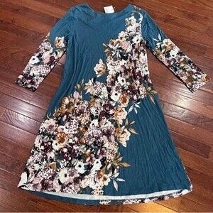 Cato long sleeve green floating floral shift dress size small NWT