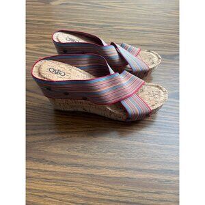 Cato multi colored cork look wedge sandals size 10M. Heel measures approximately 4". Good pre-owned condition.