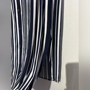 Elevate your wardrobe with this stylish Cato maxi skirt. Featuring a classic navy and white vertical stripe pattern, this skirt offers a flattering and elongating look. The button-down front adds a touch of sophistication, while the elastic waistband ensures comfort and ease of wear. Perfect for both casual outings and more formal occasions, pair it with your favorite top for a chic ensemble.