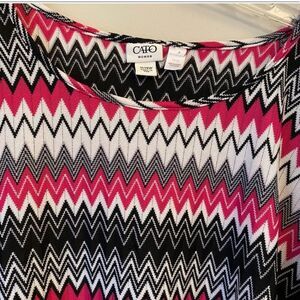 Great top to wear with black snacks for work or with white capris. No wrinkle material great for traveling. Attractive chevron design. please note that the first photo was AI generated for the sole purpose of visualization. Refer to the other photos for the actual product being sold.