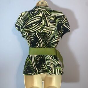 Cato short sleeve blazer Green zebra swirl Patterned deadstock size medium belt