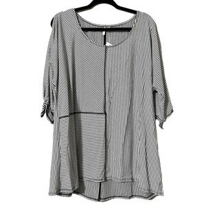 Cato size XL women’s hi low tunic 3/4 sleeves black white striped stretchy comfy