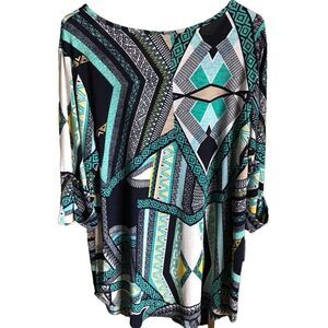 Cato size 14/16 Black green 3/4 sleeve tunic top