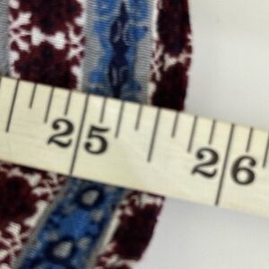 Very nice lightweight top. Slips over the head and ties with a lightweight cording with tassels on the ends. Bell style sleeves. Colorful accent circles the bottom and goes down the front. Yoke on the back Loose fitting style. Measurements are pit to pit flatfold about 28”. The total length from top of shoulders to hem measures about 26”. No visible flaws. Questions please ask and we will answer ASAP