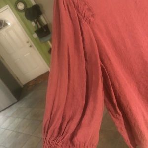 Cute top. I have only worn this once. Has cute ruffles on the sleeves.