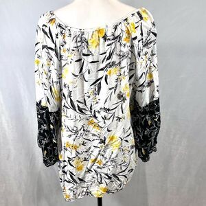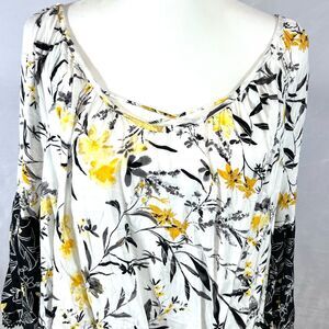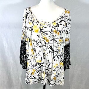 Cato white yellow and black floral boho top size XL