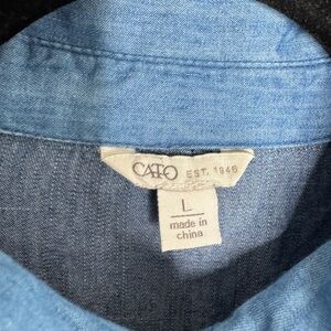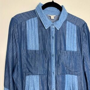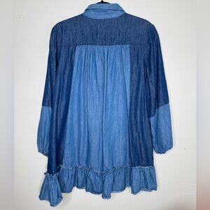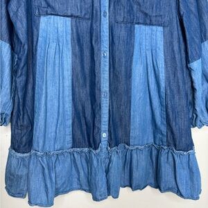 Cato womens L Button down ruffle patchwork denim shirt dress preppy western boho