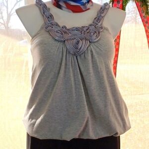 Cato womens top size XS IN A BEAUTIFUL light gray with raised flowers