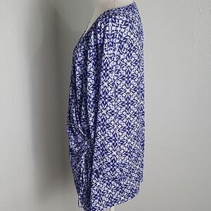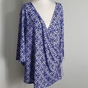 Cato Blue & White Wrap-Top with Lace-up Tie on the Side, Size 18/20W