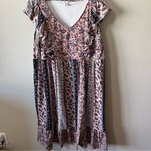 Cato Dress VGUC Size 22/24 Allover floral print Short flutter sleeve V neck 97% polyester 3% spandex