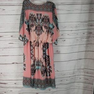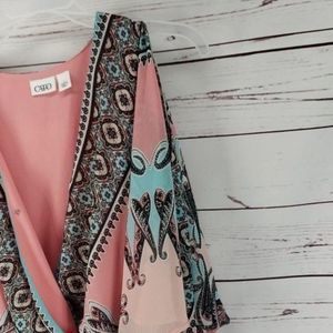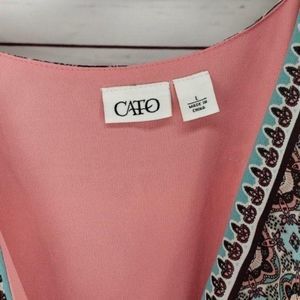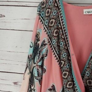 Cato Faux Wrap Deep V Peach Black Abstract Print Size Large Dress