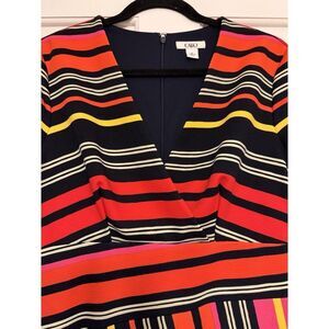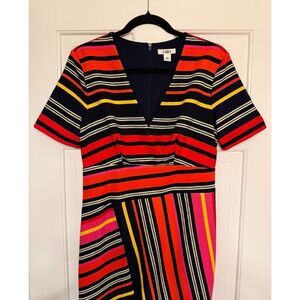 Cato Fully Lined Multicolor Dress with Multidirectional Stripes V-Neck Size 10
