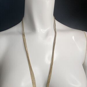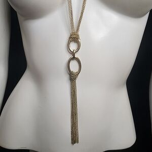Cato gold tone and silver tone four chain necklace with a gold tone tassel pendant.