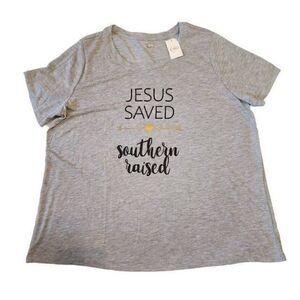 Cato Grey T-Shirt "Jesus saved Southern Raised" Size 18/20 NWT