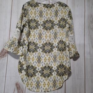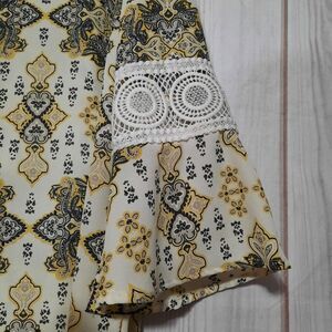 Cato Shirt Ladies Medium Yellow Semi Sheer Crochet Bell Sleeve