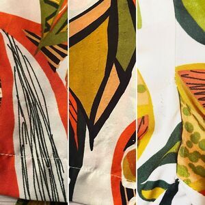 Cato Vibrant Flowy Tropical Extra Wide Leg Palazzo Pants Green Orange Size Medium. Stand out with these wide leg pants featuring bold green and orange designs. Perfect for a statement piece! Extra wide legs. Full length pants, smocked waist. Very Stretchy waist. Satin feel. Several pulls and one that goes from top to bottom on one leg. See all photos. Though it has a a few pulls, hard to see with the extra wide flowy legs.