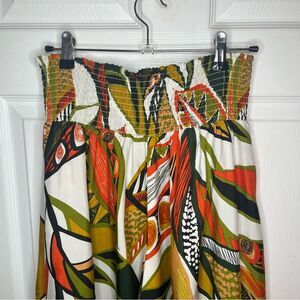 Cato Vibrant Flowy Tropical Satin Extra Wide Leg Palazzo Pants Green Orange M