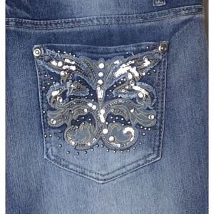 bootcut jeans, rhinestone jeans, women's denim, embellished jeans, Cato jeans, size 16 jeans, blue jeans, stylish jeans, casual wear jeans, rhinestone accents, comfortable jeans, fashion denim, women's bootcut