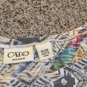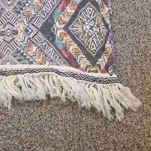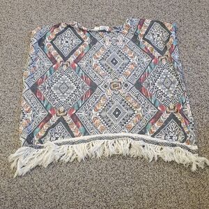 Pretty top with Native design Lightweight material Great used condition Fringe along bottom