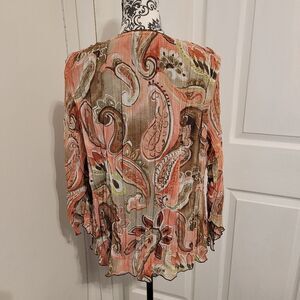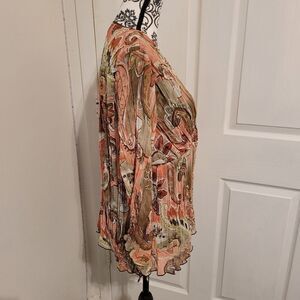 Beautiful top. Made with all polyester materials. Lightweight and flowy. Fully lined. Low v neckline. Tag says size XL.