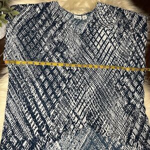 Cato navy/white Short sleeved high low Button up blouse sz large measurements in photos Preloved, EUC