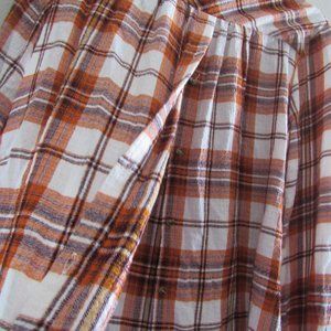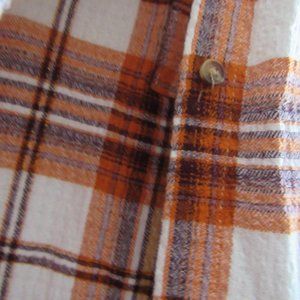 Catos half way down the shirt buttons front small pocket lone sleeve, buttons half way up the back. Brown, white orange and yellow plaid New #119
