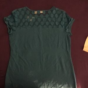 It has a cute see through edge around the top of the shirt. It's great but it's too big on me. It's a women's small.