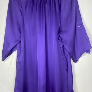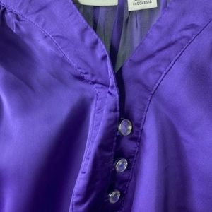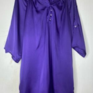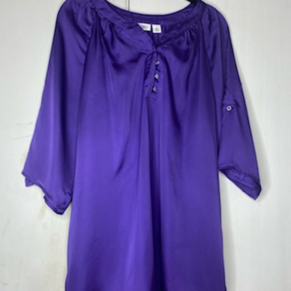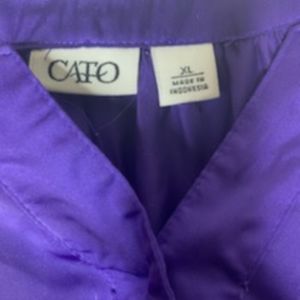 Purple button down front (3), 100% Polyester, exclusive of trim. Size XL , can roll up and button sleeves