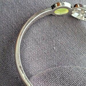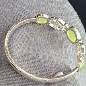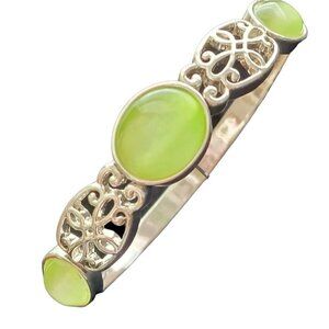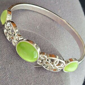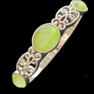 Cats Eye Green Bangle Bracelet Unhinged Silver Tone NWOT Small Hand 7.5" Wrist