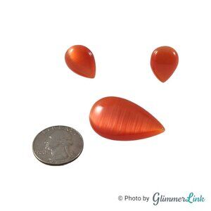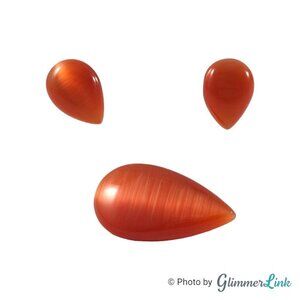 Cat's Eye Orange Glass Teardrop Gold Tone Brooch Earrings Jewelry Set