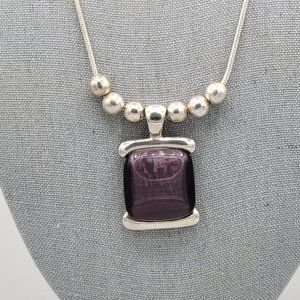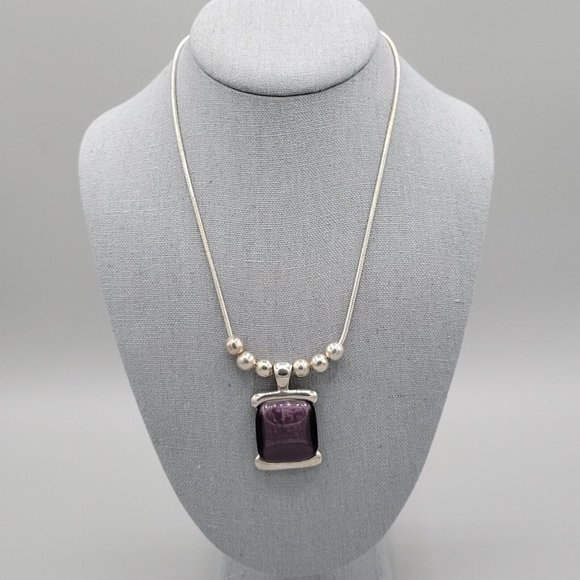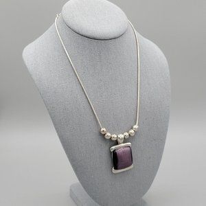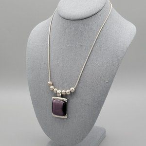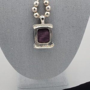 Cats Eye Purple Stone Womens Fashion Necklace Silver Tone Snake Chain 18 in