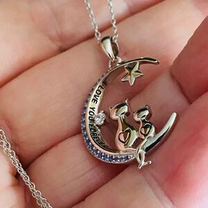 Cats On Moon I Love You Forever CZ Sterling Silver Necklace